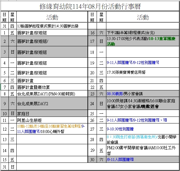 114年8月活動行事曆